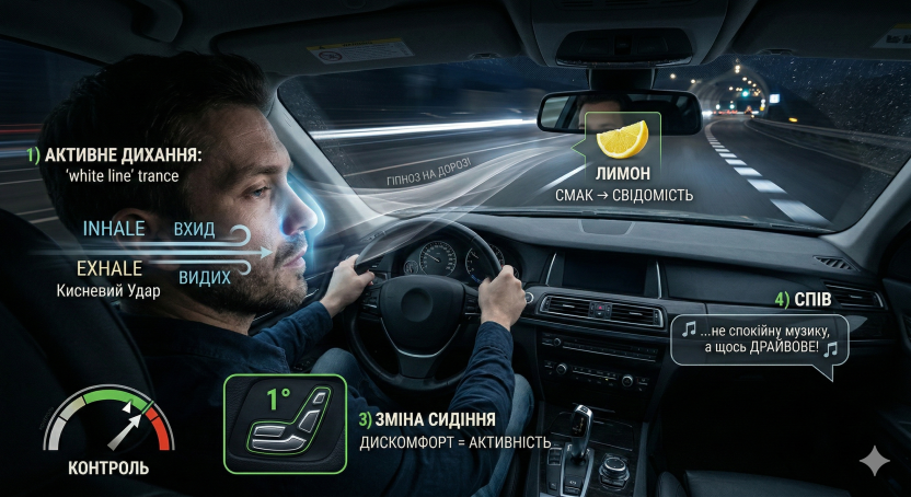 Відео 'Гіпноз на дорозі. Як не заснути?', озвучене українською мовою, розташовано на сторінці відеохостингу youtube.