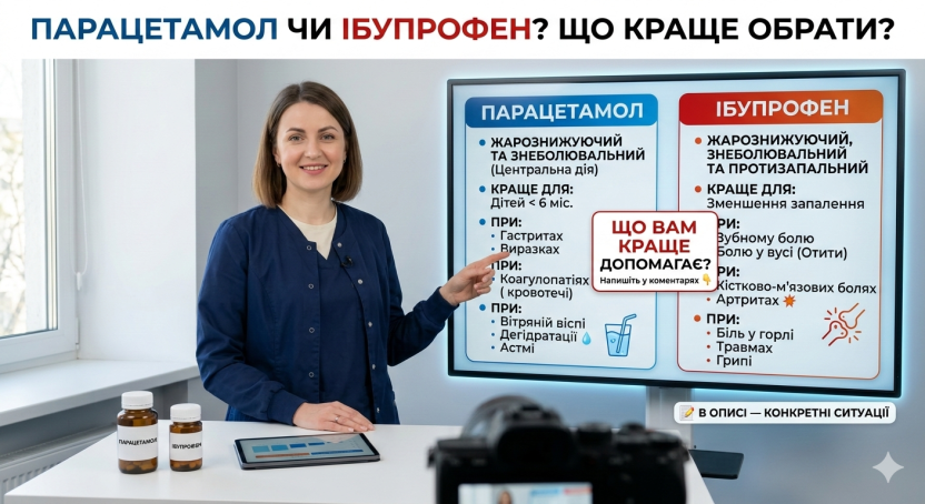 Достовірність10: Інформація повністю відповідає сучасним медичним протоколам. Правильно вказано механізми дії (центральна дія парацетамолу vs протизапальна ібупрофену) та критичні застереження (уникати ібупрофену при вітрянці та гастритах).